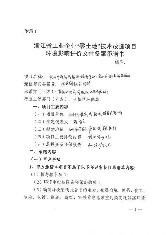 浙江省工業(yè)企業(yè)“零土地”技術(shù)改造項目環(huán)境影響評價文件備案承諾