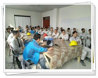 第一張畫面上的設備是給水泵,隸屬電站輔助鍋爐的輔機設備,主要任務就是給電站輔助鍋爐供除氧水。第二張圖是各專業人員觀察電站輔助鍋爐的運行情況。 實地觀察了調試情況,還要理論培訓,雙管齊下才能保障運行,看我們的工程師全程英文授課,條理清晰,口齒伶俐;看歪果仁目不轉睛,認真聽課……