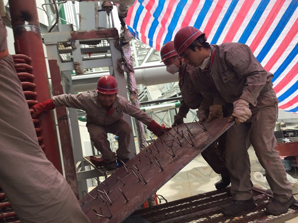 黃梅季的杭嘉湖平原,大雨小雨不停歇。 近日,桐鄉電廠的客戶打來電話,希望進行燃燒器、過熱器、煙氣、密封裝置的改造工作,制定了計劃整改日。臨行日到來,窗外卻是大雨無歇。項目經理有些猶豫:露天施工難度大啊……可若是晚兩天再去,改變計劃、工期延誤會造成客戶的損失。經過多次溝通,項目經理伏案細想雨天工程中的難點要點,制定解決措施,做好計劃心里有了底,帶上施工隊出發了…… 在現場穩穩地搭好腳手架(確保安全第一),系好安全帶,帶上安全帽,人員分組,焊機到位,確認準備工作已就緒,開工…… 辛勤工作者們地風采: