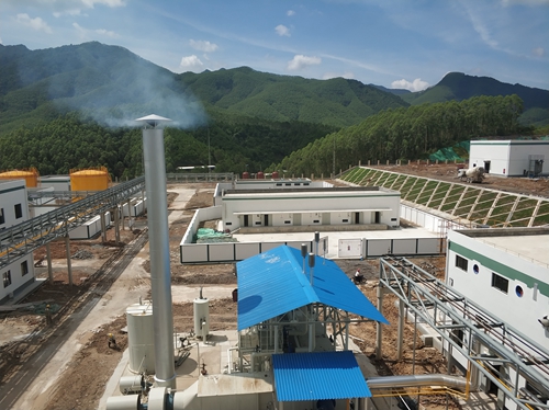(室外布置的藍(lán)頂鍋爐房在群山環(huán)抱中格外耀眼)