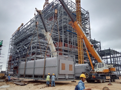 歷經兩個不眠夜,輔助鍋爐點火調試工作順利完成,鍋爐房內掌聲一片。我們為近一個多月自己的辛勤勞動鼓掌,驀然回顧,鍋爐進場、吊裝、安裝的細節歷歷在目: