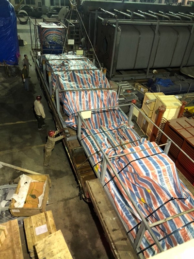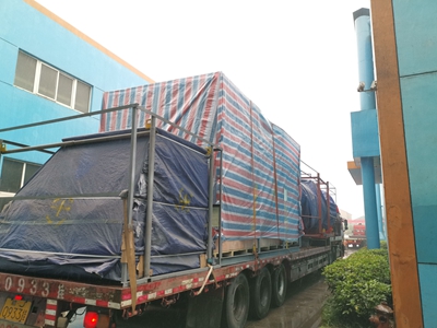 B 在車間狹長的通道上,安排裝車,蓋好防雨布: