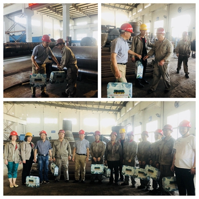 慰問組深入生產(chǎn)一線,詳細(xì)了解職工的生產(chǎn)生活、飲食衛(wèi)生和勞動(dòng)保護(hù)等和情況,叮囑大家在工作時(shí)務(wù)必要注意身體健康和勞動(dòng)安全。張建民代表公司員工感謝上級(jí)總工會(huì)的慰問,并匯報(bào)公司工會(huì)組織的防溫降暑工作,一是按照“抓兩頭、歇中間”的原則調(diào)整工作時(shí)間,控制室外作業(yè)時(shí)間和勞動(dòng)強(qiáng)度;二是公司每天熬制綠豆湯和棒冰送到一線班組,特別配置的電冰箱確保員工能享用到工會(huì)準(zhǔn)備的各種消暑用品,在辦公室內(nèi)還備用防中暑藥品,努力從全方位為員工創(chuàng)造安全、健康、清涼的工作環(huán)境,確保大家度過高溫炎熱的夏季。