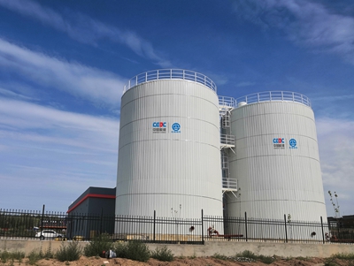 (站在祖國版圖最西邊,新疆伊東工業園南區電極鍋爐常壓和承壓蓄熱罐群組)