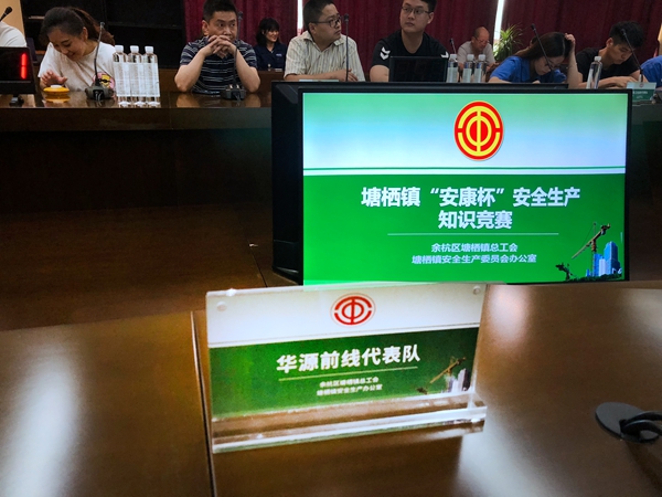今年6月是全國第19個“安全生產月”, 主題為“消除事故隱患、筑牢安全防線”。6月16日塘棲鎮總工會舉辦“安康杯”知識競賽活動,方莎莎、王凌云和姜垚杰三位員工代表華源前線參賽。