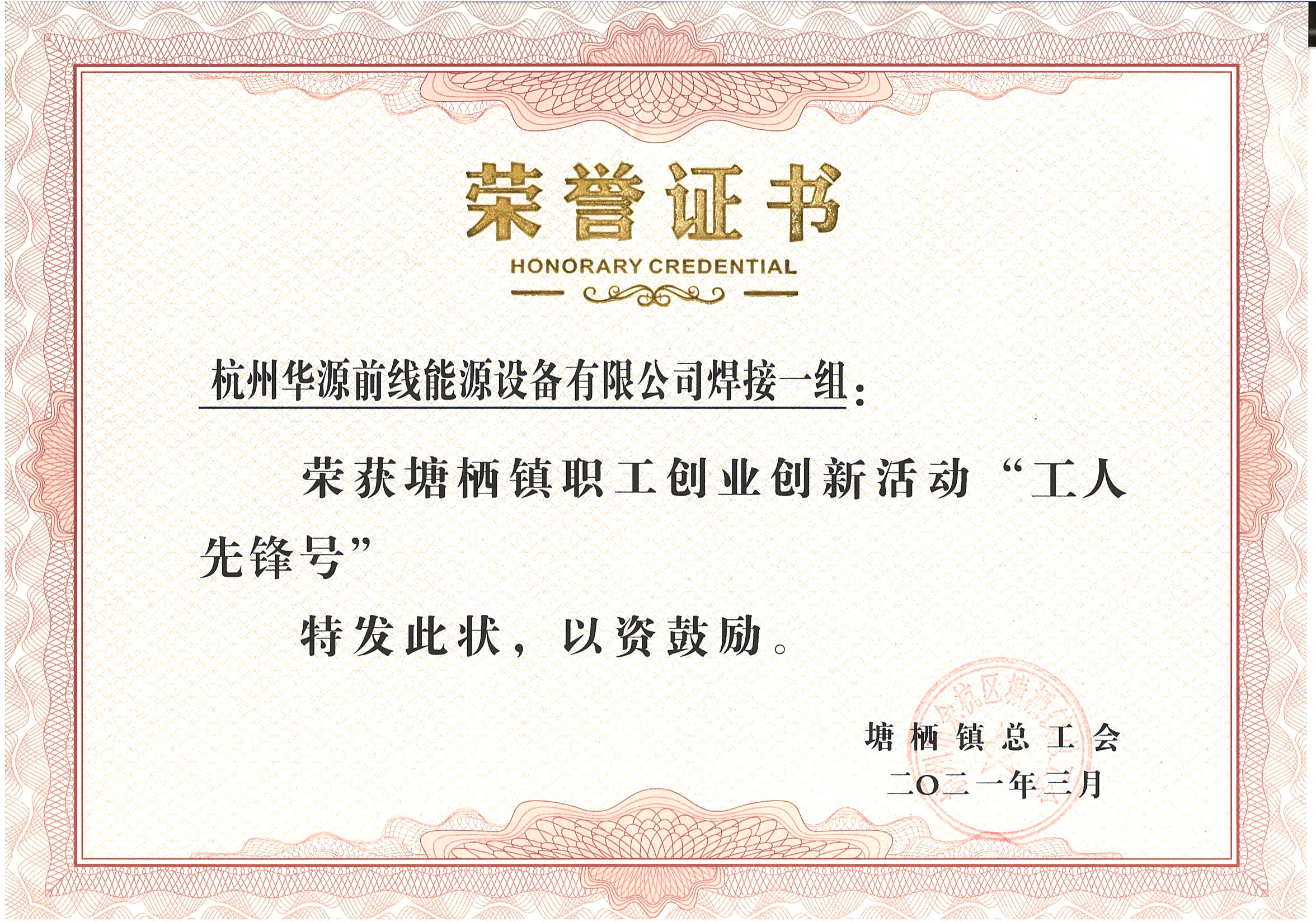 焊接一組獲得塘棲鎮“工人先鋒號”稱號。獲評塘棲鎮最美工會志愿者、優秀工會工作者及勞動競賽先進個人等多項榮譽。鎮黨委委員沈一鳴、鎮人大主席黃國連、副鎮長徐建明、塘棲鎮總工會主席張華余出席會議并為受表彰的先進單位和個人頒獎。