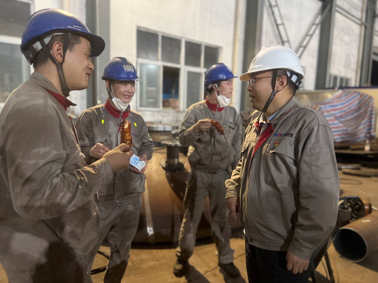 這時,“我”聞到了一股飯香,原來是領(lǐng)導(dǎo)帶著美食來看望“我”了,他親切的與工人師傅們交談,詢問生活與工作的情況,并對大家的辛勤付出表示感謝。