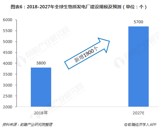 預計在各個國家對生物質能發電補貼政策的持續激勵下,生物質發電廠建設將保持持續快速的增長,預計至2027年新增數量達到1900個,每年新增超過200個,到2027年底,全球生物質發電廠達到5700個,市場規模空間巨大。