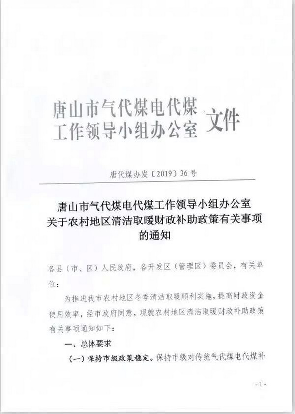 定了!唐山農(nóng)村地區(qū)清潔取暖財政補助政策